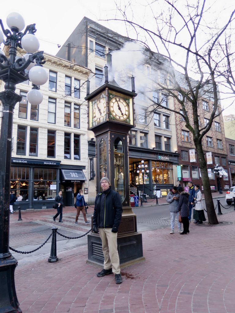 In the evening I wondered down to Gastown, Vancouver’s oldest neighbourhood. It’s called Gastown as back in 1867, Jack “Gassy Jack” Deighton opened the first tavern here and he loved to talk, apparently for hours, hence his nickname. At least it was nothing to do with farting. One of the famous landmarks here is the steam powered clock. Many tourists flock here to see and hear to clock chime at 15 minute intervals.