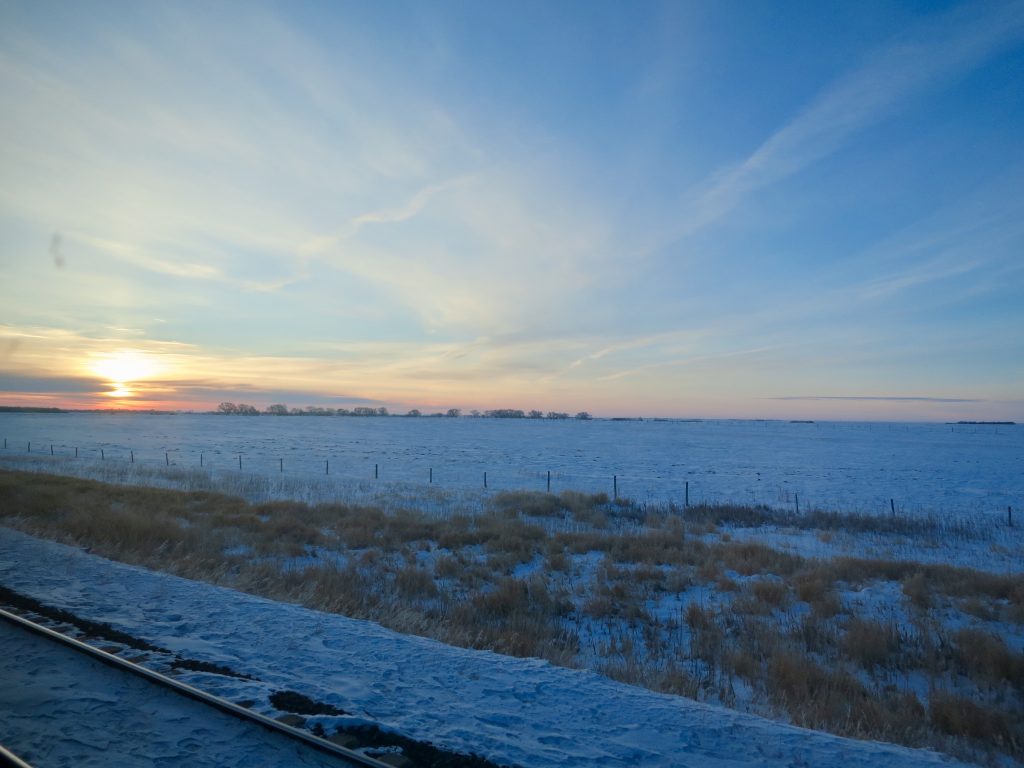 Once the train arrived, I found my seat which happened to be the same one I had on the previous Vancouver to Edmonton leg. It would be a 3.5 – 4 day journey on board the train to Toronto. No WiFi which was nice but there was still plenty to do on the train and not get bored. As it turned out, we didn’t miss dinner service on the train but by this time I was a little peckish so had the veal escalope which was really nice and succulent. Turning in early it was a smooth-ish journey though you could feel the driver trying to make up time. I don’t think a 2.5hr delay in a 4 day train journey is that bad at all. In the morning, I woke up to spectacular views over snow covered prairies.