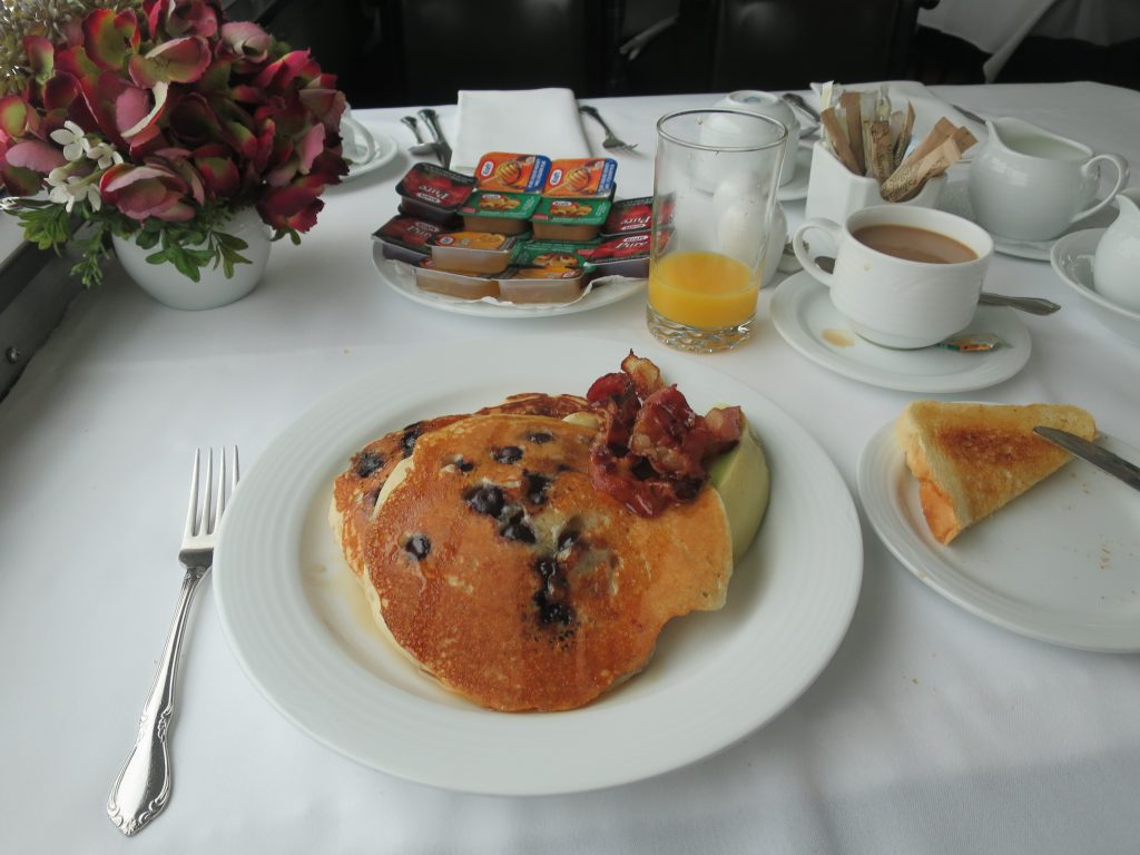 The breakfast was fabulous and I had to try the Canadian breakfast; Blueberry pancakes with bacon & maple syrup, coffee and orange juice. The bacon and maple syrup combination really works well. Am surprised that more Canadians are not fatter if this is what they eat for breakfast.