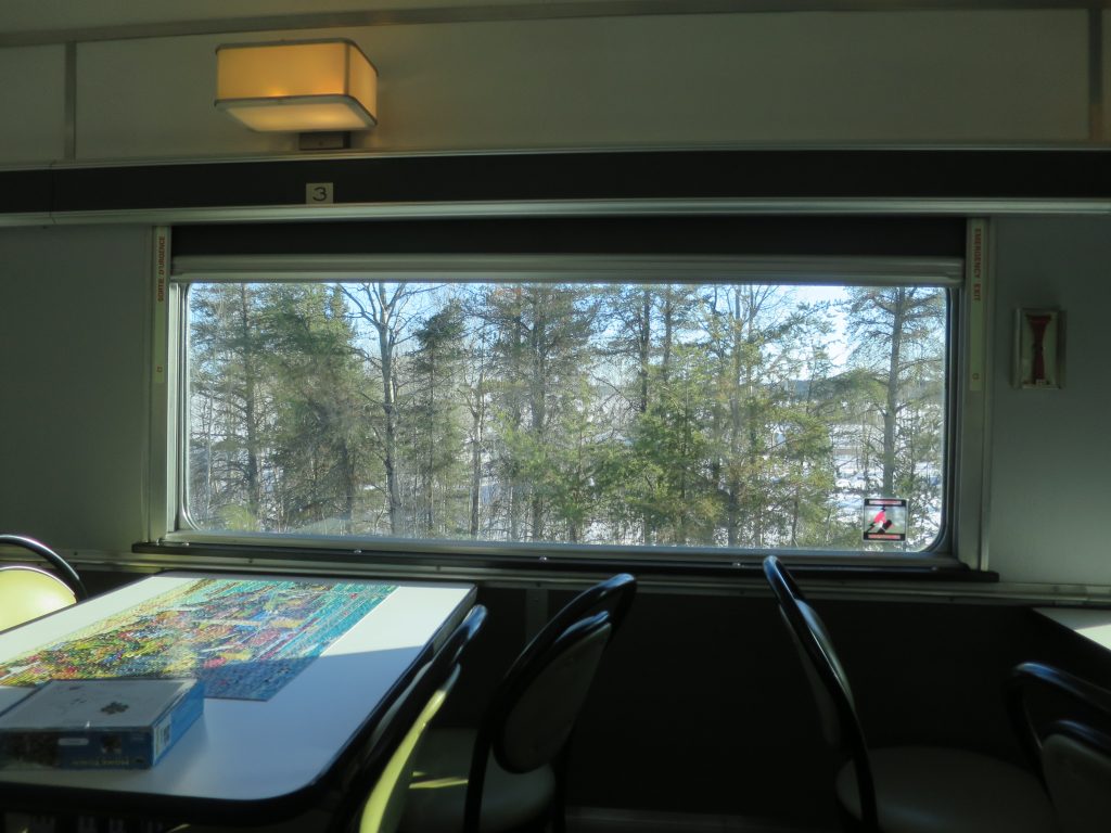 Once at Saskatoon the train was held by a further 2 – 3 hours because of having to wait to allow freight trains to pass. But it was a welcome opportunity to brave to cold, stretch the legs and get some fresh air which froze my nose. We also collaborated in doing a 1000 piece jigsaw puzzle in a sort of ‘tag team’. It was the perfect size for the tables in one of the common areas on the train.