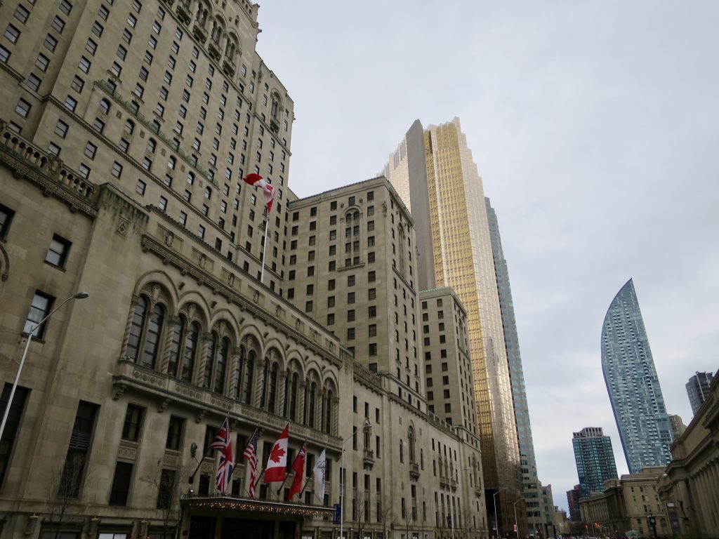 By early afternoon on the fourth day, the train finally arrived in Toronto Central station 1.5hrs after its scheduled arrival time. The driver and engineer did a great job of making up lost time over the last four days. I collected my bag from the carousel like in an airport and then tried to find my way out of the station which was a little challenging as it is so big and badly signed. Eventually I found my way out and made my way across the road to the hotel I booked, the Fairmont Royal York. It reminded me of the apartment building in Ghostbusters.